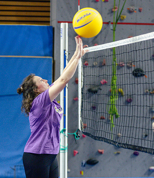 La dernière partie de la séance est dédiée au soft volley, une variante douce et ludique du volley-ball. L’utilisation de ballons de soft volley, plus légers et adaptés, permet d’être en mouvement sans pression compétitive tout en développant coordination, esprit d’équipe et agilité.