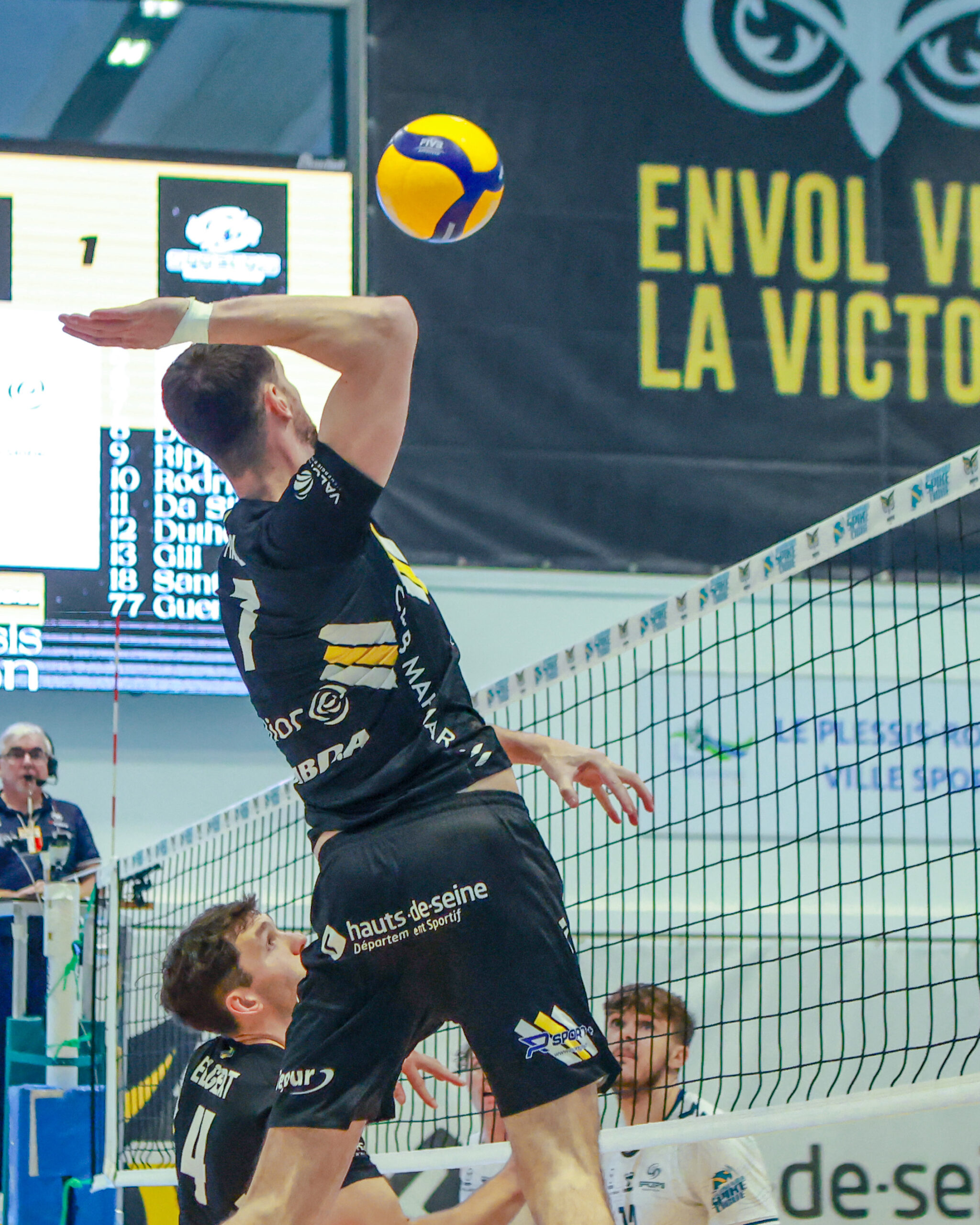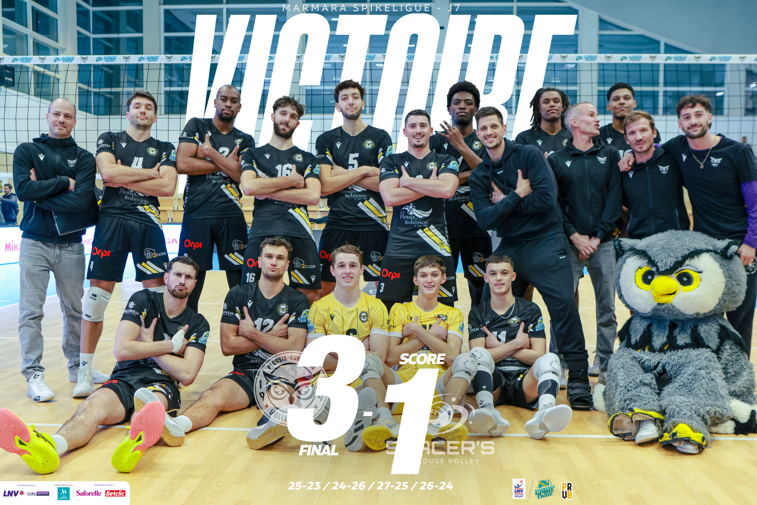 Dans la dernière manche, le scénario se répète : Toulouse prend trois longueurs d’avance en fin de set. Maxwell Elgert trouve alors son capitaine Raphaël Pascal, auteur d’un match impressionnant avec 15 points, et le PRVB recolle. La fin de set, ponctuée de nombreux rallyes, tourne à l’avantage des Hiboux, qui élèvent leur niveau de jeu pour conclure 25-23.