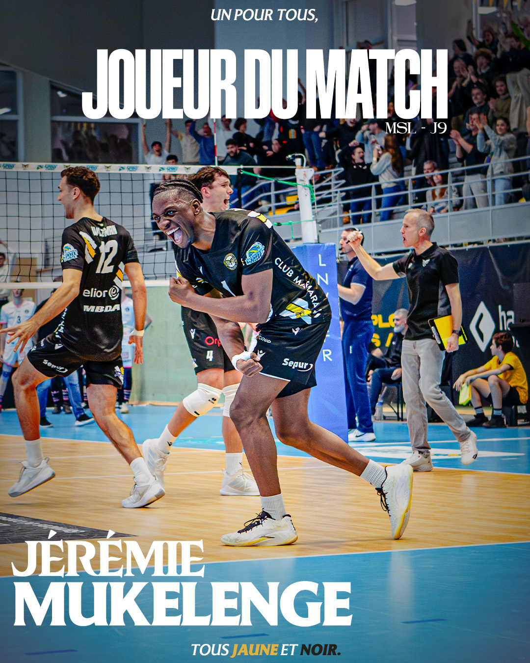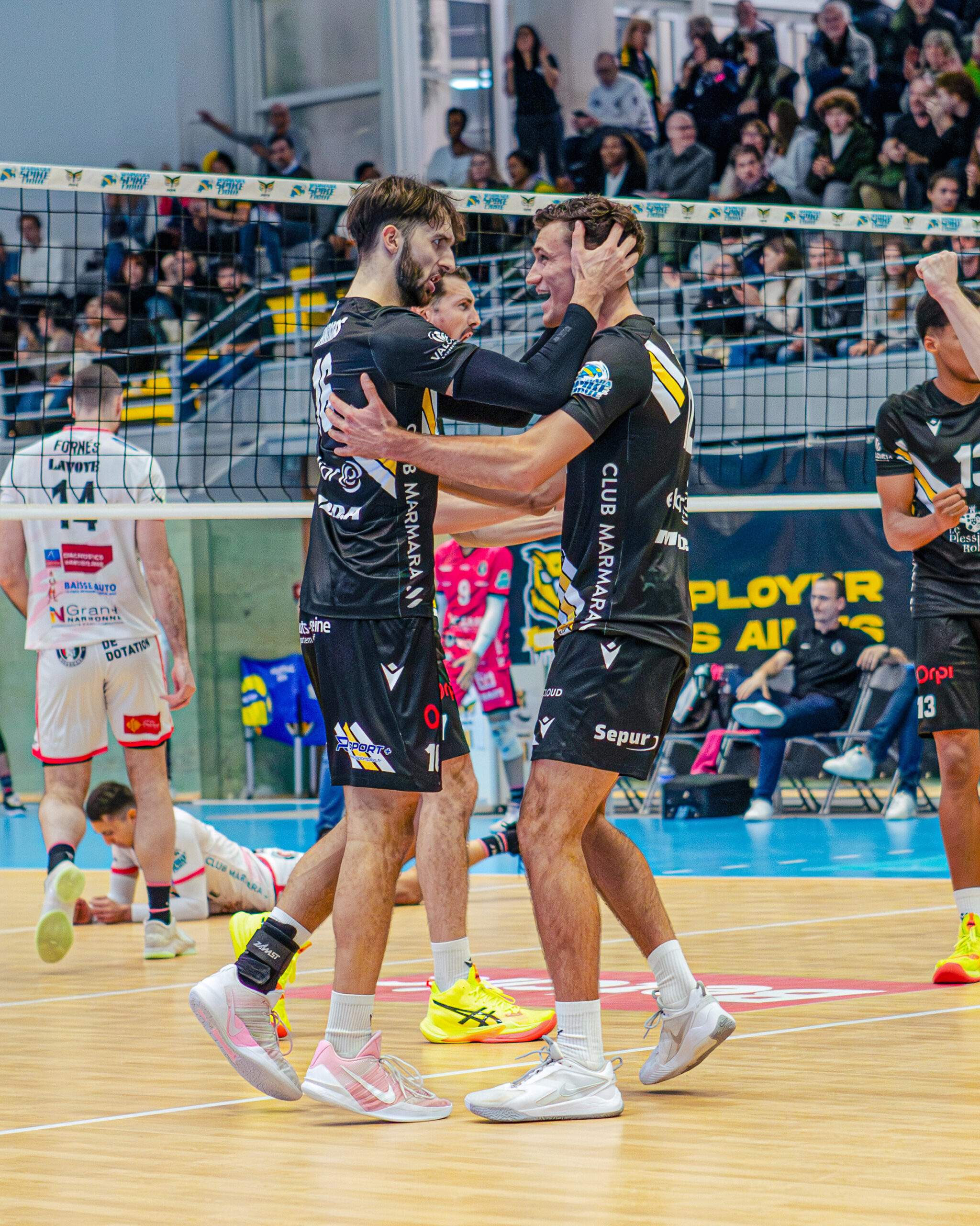Le tie-break est extrêmement tendu. Les deux équipes se rendent coup pour coup. Nathan Canovas (22 points) s’illustre à l’attaque, tout comme Jérémie Mukelenge, resté sur le terrain après son entrée au set précédent. Le Plessis sauve trois balles de match, puis inscrit deux blocs consécutifs pour s’offrir la victoire 3-2, dans un Omnisports en feu : 19-17.
